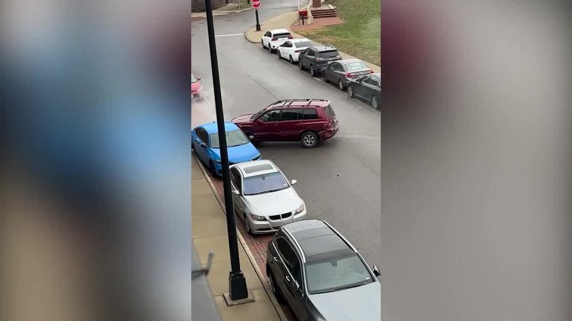 Affacciatosi, l’uomo ha visto (e ripreso con il cellulare) un’auto marrone che si schiantava ripetutamente contro i veicoli parcheggiati ai due lati della strada. Vista la situazione, l’uomo ha chiamato la polizia per porre fine alla situazione.