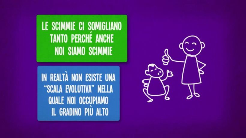 Se vi è capitato di osservare da vicino delle scimmie, magari in un parco zoologico, vi sarete sicuramente accorti di quanto il loro aspetto e soprattutto il loro sguardo possano sembrare “umani”. Ma perché le scimmie sono così simili all’uomo? La risposta più logica è che, come aveva teorizzato Charles Darwin, discendiamo dai primati, ma non è proprio esatto: le scimmie ci somigliano tanto, perché anche noi siamo scimmie! Gli scienziati hanno recentemente spiegato che, al contrario di quello che abbiamo sempre pensato, non esiste una vera e propria “scala evolutiva” nella quale il gradino più alto è occupato dagli esseri umani: ogni specie vivente presente sulla Terra si è sviluppata in modo indipendente e parallelo tra i 4 e gli 8 milioni di anni fa. In realtà, quindi, noi siamo primati parlanti senza pelliccia, abituati a camminare sempre eretti. I primati sono mammiferi con determinate caratteristiche genetiche e la similitudine tra uomini, gorilla, scimpanzè e bonobo dipende dal fatto che il loro DNA ha differenze minime, in alcuni casi inferiori al 2 %: i paleontologi sono convinti che sia esistito un antenato comune, uno scimmione vissuto in Africa una decina di milioni di anni fa, dal quale poi sono derivate diverse specie di scimmie, tra cui l’essere umano. Oggi hai imparato perché le scimmie sono così simili all’uomo!